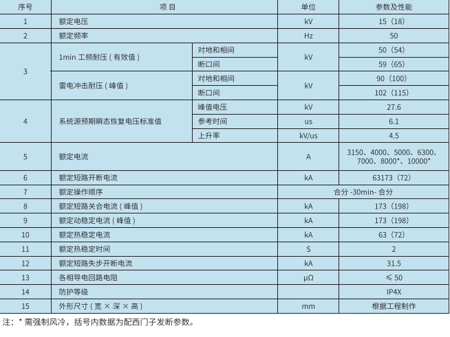 ◎XGN口-18配西門子3AH發(fā)電機(jī)斷路器,額定電流可達(dá)8000A,開端72kA,額定電壓18kV。