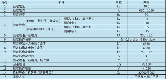 ◎真空斷口與隔離斷口分別動作,既完全解決了動作時隔離斷口拉弧燒壞問 題,又提高了整機的機械壽命,機械壽命可達到 2 萬次。