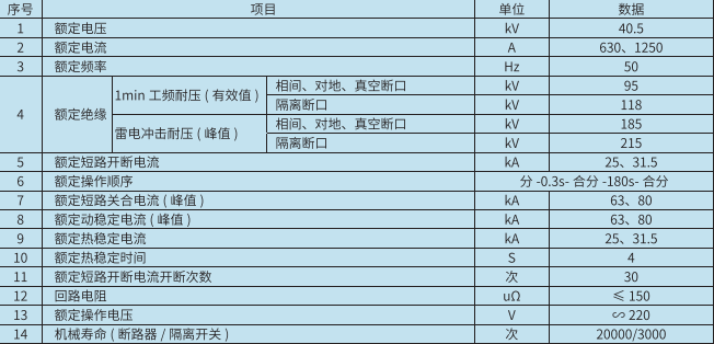 ◎斷路器技術(shù)參數(shù)可達(dá)到額定電流 1250A,開(kāi)斷 31.5kA。
